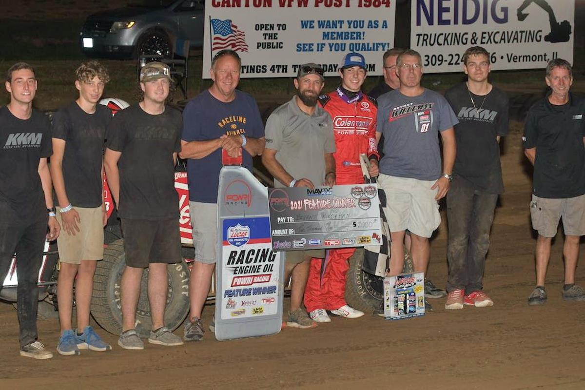 By POWRi (Canton, IL) -- The Colby, KS native behind the wheel of the Keith Kunz Motorsports No. 01 claimed his first career Lucas Oil POWRi National Midget League victory at Spoon River Speedway in Canton, IL. Not only did he earn himself a win, he also extended his season championship points lead over the rest of the field.
