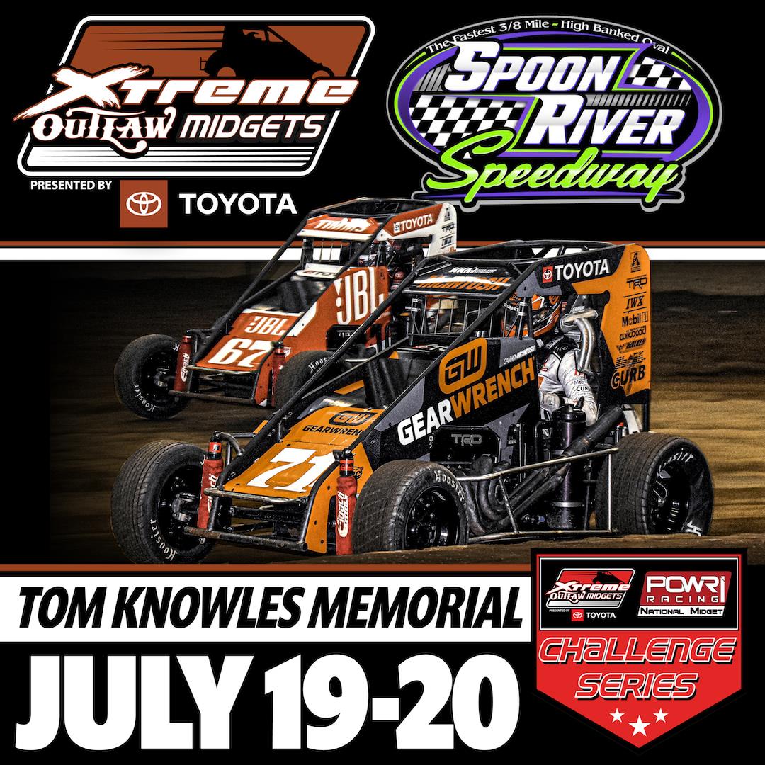 One of the most highly anticipated events of the season at Spoon River Speedway is the Tom Knowles Memorial. The 2024 version of the event, set for July 19 & 20 will see the Xtreme Outlaw Midget Series make their debut at the high banks of the Spoon with the Xtreme Outlaw - POWRi Challenge series.